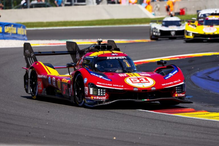 foto: © Julien Delfosse / DPPI Počas závodu v 80 kole, keď na trati jazdil Safety Car sa vydali obe Ferrari, podobne ako súperi, do boxov. Na čele bolo v tom čas Ferrari #50 s Molinom, ktoré viedlo pred Giovinazzim…