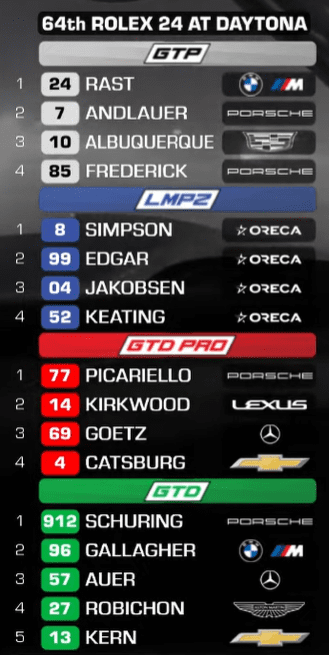 ROLEX 24H DAYTONA | závod (neoficiálne výsledky)